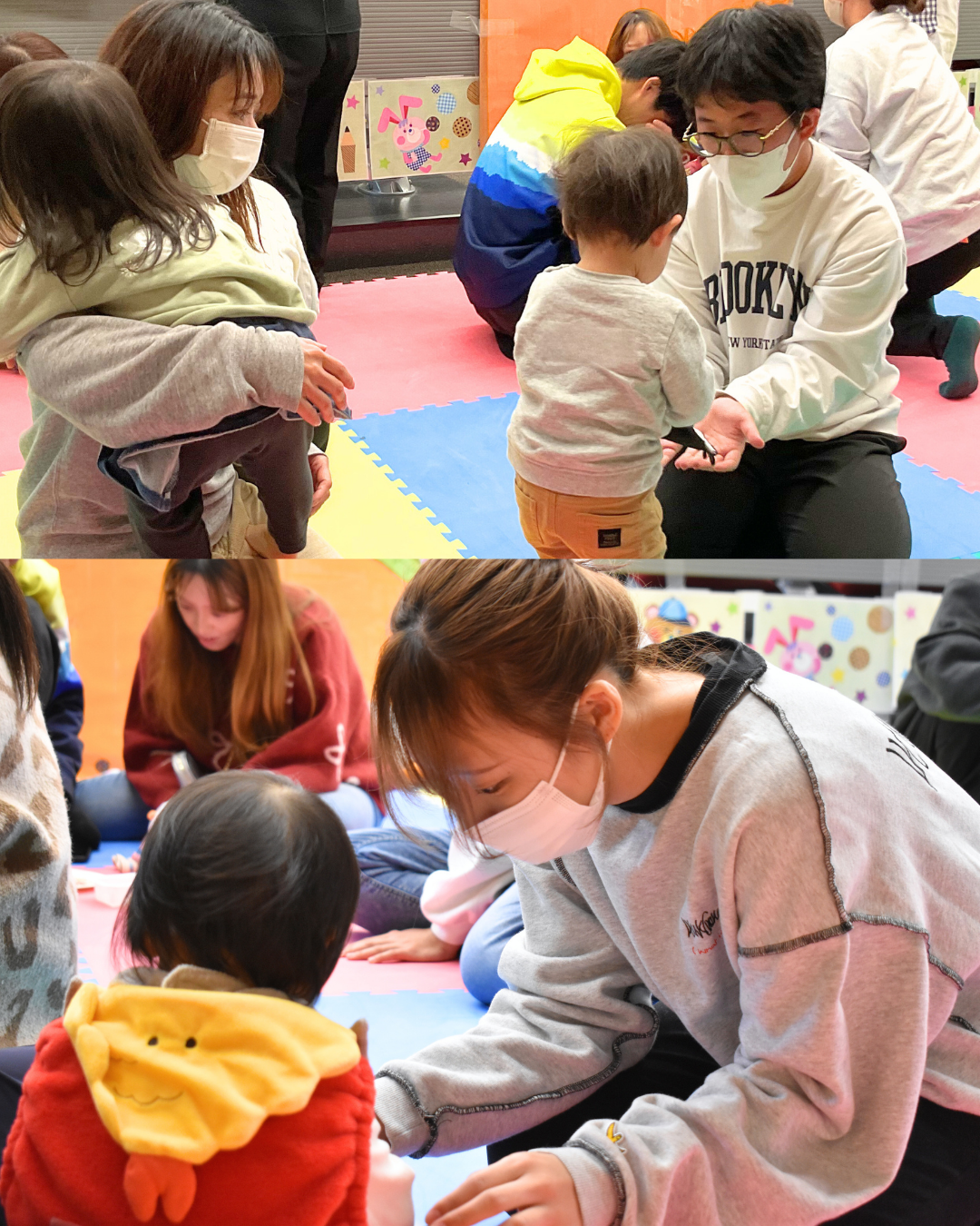 手遊びは「さんどいっち」「こすれこすれ」「おとしだまキャッチ」の3つ。