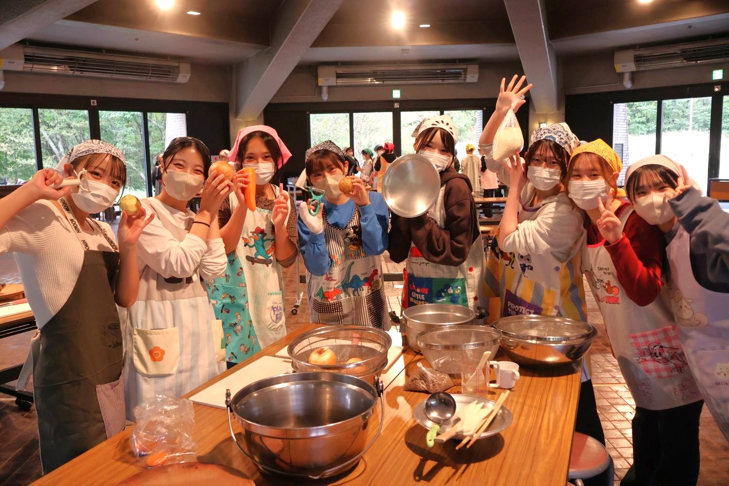 10月10日~11日、幼児教育科1年生による「グループワークキャンプ」を実施しました。今年度は、栃木県那須町にある 栃木県立なす高原自然の家 で1泊2日の宿泊実習を行い、班旗コンテストやレクリエーション、夕食づくり、キャンプファイヤーなどさまざまな活動を体験しました。キャンプには2年生の有志も参加し、1年生の活動を温かくサポートしました。学生たちは、自然環境を活かした体験と、仲間と協力して活動する中で、保育者としての実践的な学びを深めることができました。