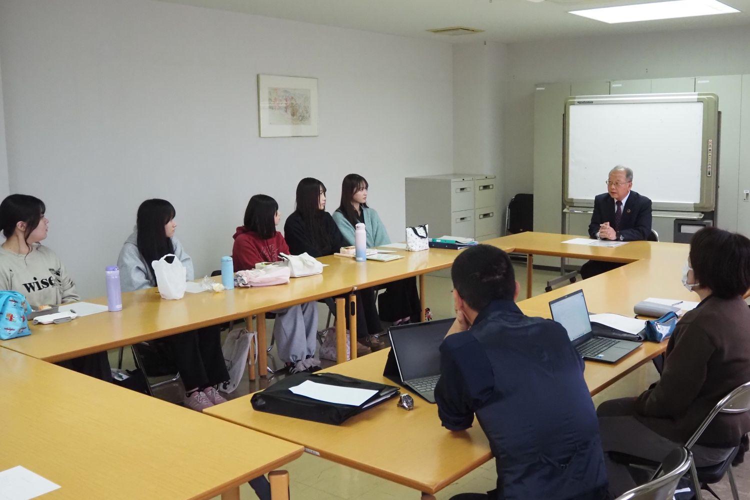 当日は、幼児教育科の1年生5名と教職員9名が参加し、入学後半年間の学びを振り返りながら、授業や学生生活、実習などについて率直な意見交換を行いました。