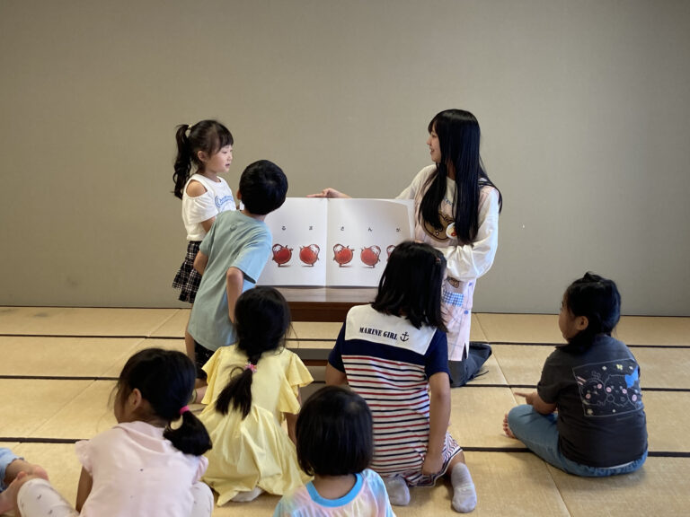 赤ちゃんのお世話体験では、子どもたちが「赤ちゃんが気持ちよく過ごせるように」と、一生懸命にお着替えや抱っこをしている姿が印象的でした。絵本の読み聞かせ体験では、2グループに分かれて練習を行い、緊張しながらも保護者の前で堂々と発表することができました。最後まで人形を抱っこして離さない子どもも多く、責任感や愛着を持って取り組む様子が見られました。