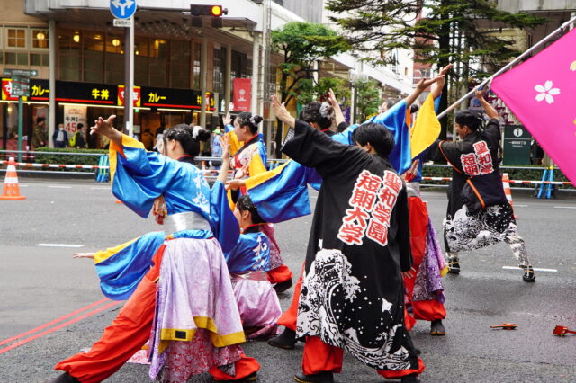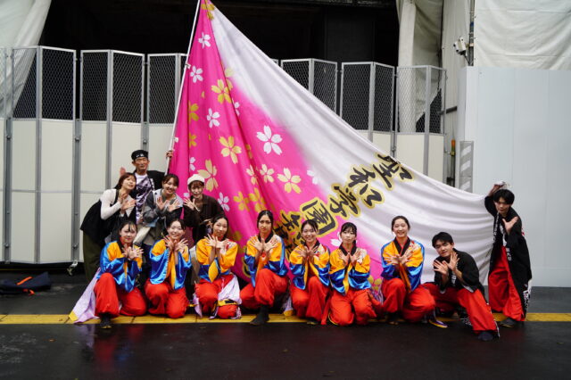 令和7年10月11日(土)・12日(日)におこなわれた第28回仙台みちのくYOSAKOIまつりに、本学YOSAKOIチーム「和敬」が出場し、2日間で合計9回の演舞を披露しました。1日目は、台風の影響によるあいにくの天候に見舞われたましたが、先輩方から引き継がれて来た「龍吟虎嘯(りゅうぎんこしょう)」を全員で最後まで元気に笑顔で踊り切ることが出来ました。2日目は曇り空、踊るのには丁度いい天気になり、定禅寺通りにも人が増えて全員で盛り上がることが出来ました。