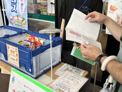 フレスタ廿日市住吉店では、家庭で使い切れない食品を集め、食品を必要とされている団体や福祉施設などに寄贈する「フードドライブ」活動を開始されています。